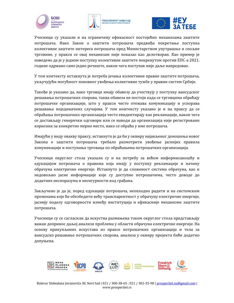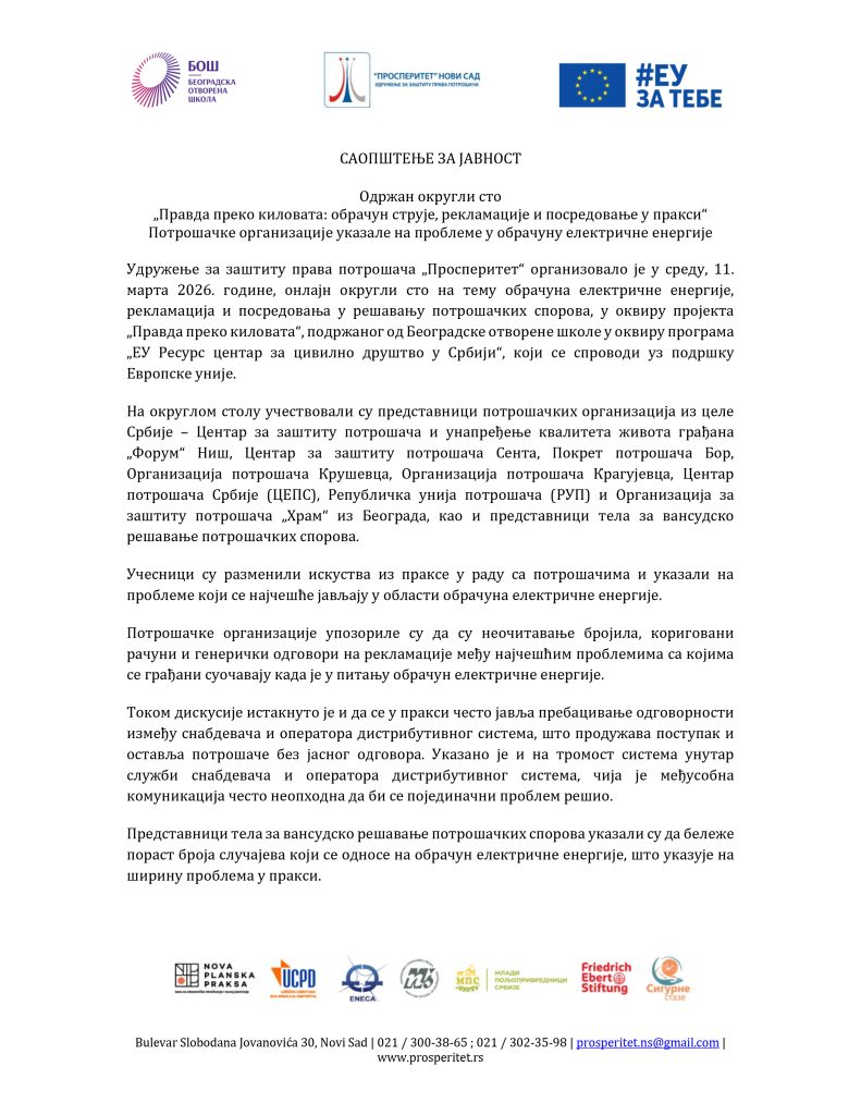 САОПШТЕЊЕ ЗА ЈАВНОСТ ОКРУГЛИ СТО