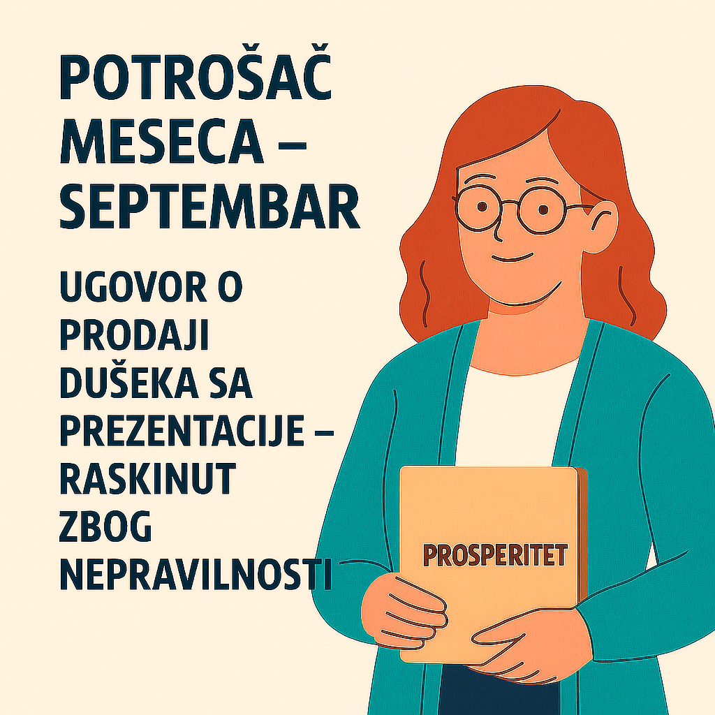 Naš potrošač meseca obratio nam se nakon što je 7. jula 2025. godine zaključio ugovor o prodaji dušeka sa magnetima na prezentaciji. Iako je zakonski rok od 14 dana za odustanak od ugovora istekao, potrošač nije odustao, već je želeo da proveri da li postoje osnove za zaštitu njegovih prava.